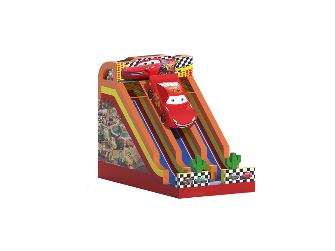 Bu özel şişme yarış arabası temalı kuru kaydırma, açık hava oyun alanlarında veya kapalı eğlence parklarında çocuklar için canlı ve keyifli bir oyun sunar.Parlak renkleri ve çizgi filmlere benzeyen yarış arabasının tasarımı hemen çocukların dikkatini çeker, basitleştirilmiş tekerlekler, farlar ve vücut çizgileri genç hayal gücüne mükemmel.