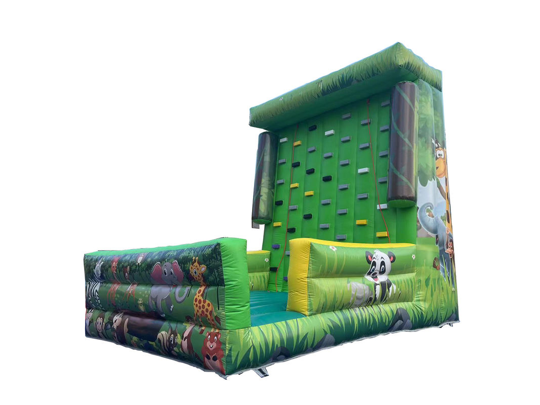 Bu açık hava yeşil şişme tırmanış duvarı, çocuklara gerçek kaya tırmanışını taklit eden gerçekçi dokular ve renkli kaya blokları ile heyecan verici bir tırmanış deneyimi sunuyor.Yapının tepesinde heyecan verici bir iniş için bağlantılı bir kaydırma sistemi vardır ve daha fazla oyun için tabanında renkli bir top çukuru vardır.