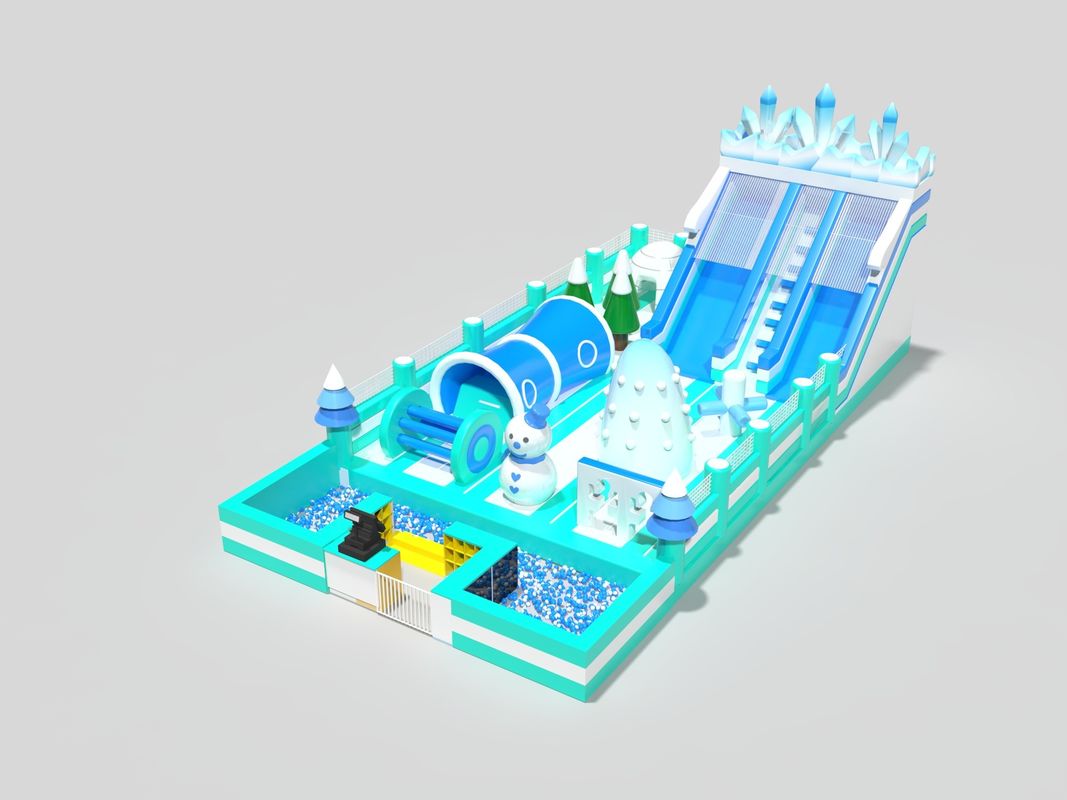 Bu şişme oyun kalesi, çocukların hayal gücünü harekete geçirmek ve saatlerce aktif eğlence sağlamak için tasarlanmış canlı bir buz ve kar dünyasına sahiptir.