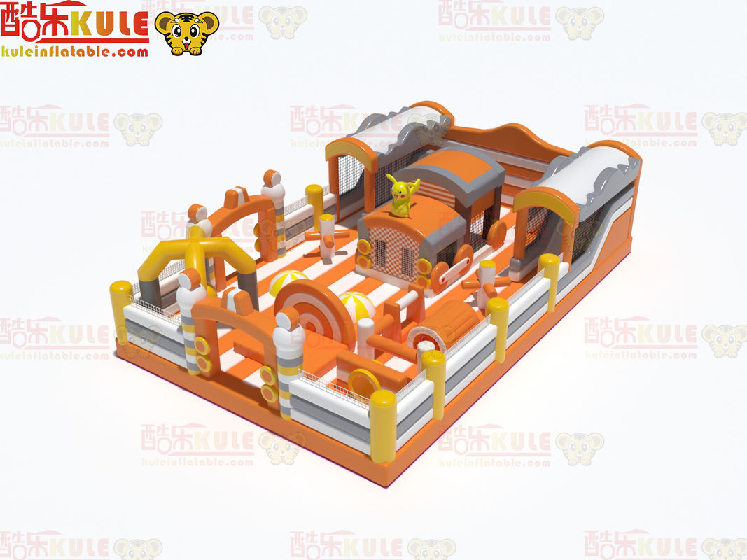 Şişme oyun kalemiz, üstte iki eğlenceli kuleye sahip canlı bir turuncu tasarıma sahiptir. Yapı, çocuklar için sonsuz eğlence yaratan, renkli bir top havuzuna inen büyük bir kaydırak içerir. Kale, çoklu etkileşimli öğelerle tasarlanmıştır: