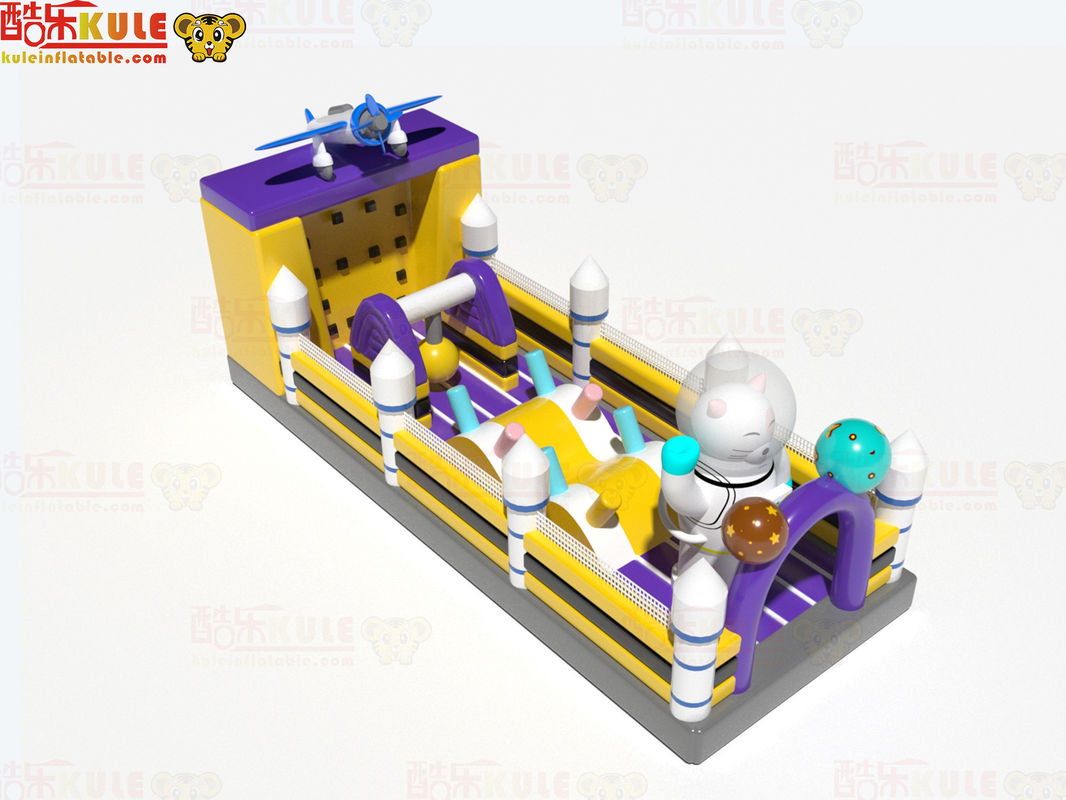 Bu ticari sınıf şişme engel parkuru, tırmanma duvarı ve kaydırak özelliklerine sahiptir ve canlı renkler ve eğlenceli dekoratif öğelerle tasarlanmıştır. Yapı, hem çocuklar hem de yetişkinler için güvenlik ve eğlenceyi birleştirir.