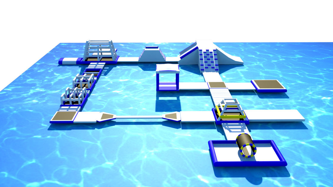 Bu şişme su parkı, tırmanma alanları, dengelendirme kirişleri, kaydırmalar,ve diğer zorlayıcı unsurlarSu ortamında eğlenmek ve egzersiz yapmak için mükemmel.
