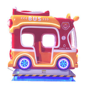 Bu parlak renkli çocuk eğlence aracı, canlı kırmızı ve turuncu renklere sahip bir otobüs tarzı tasarım sunar. Araç, görünürlük için şeffaf pencereler ve eğlence deneyimini artıran mavi ışıklı tekerleklerle "OTOBÜS" ve "Süper Otobüs" işaretlerini belirgin bir şekilde sergiliyor. Mavi ve sarı uyarı şeritlerine sahip bir güvenlik platformu tasarımı tamamlayarak eğlence parkları ve alışveriş merkezleri için ideal hale getiriyor.